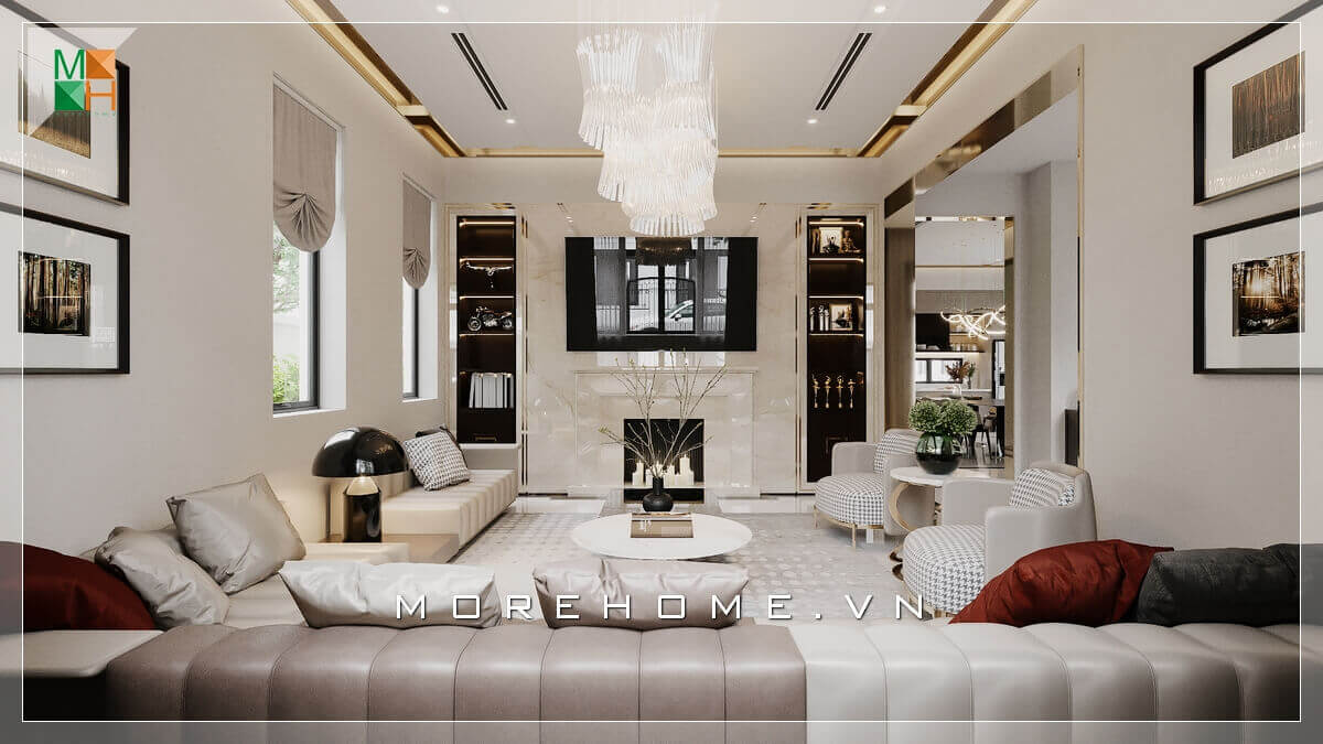 Mẫu thiết kế không gian phòng khách đẹp dành cho căn hộ cao cấp như biệt thự, penthouse, chung cư, nhà phố tân cổ điển.